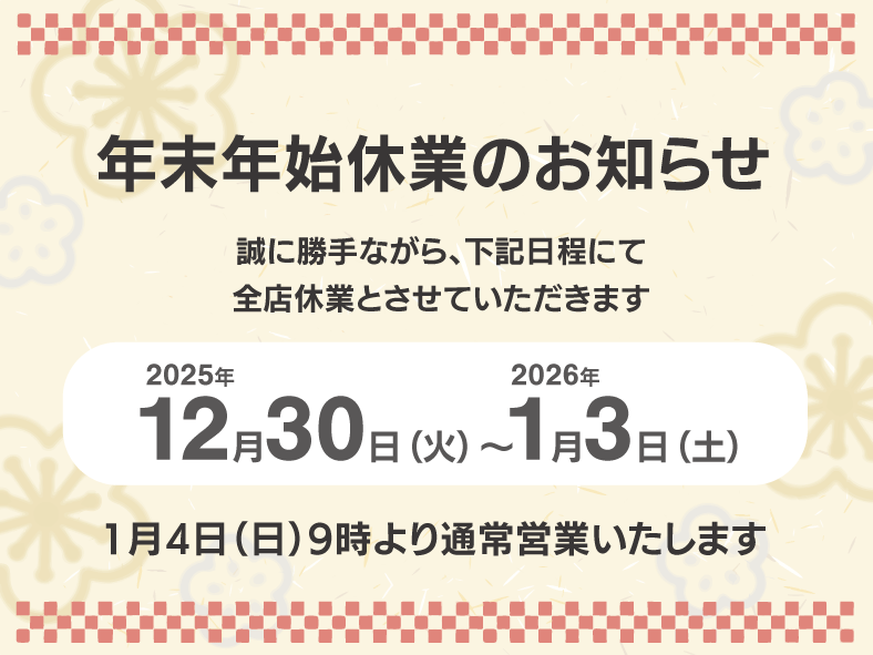 年末年始の営業は上記の通りとなります。